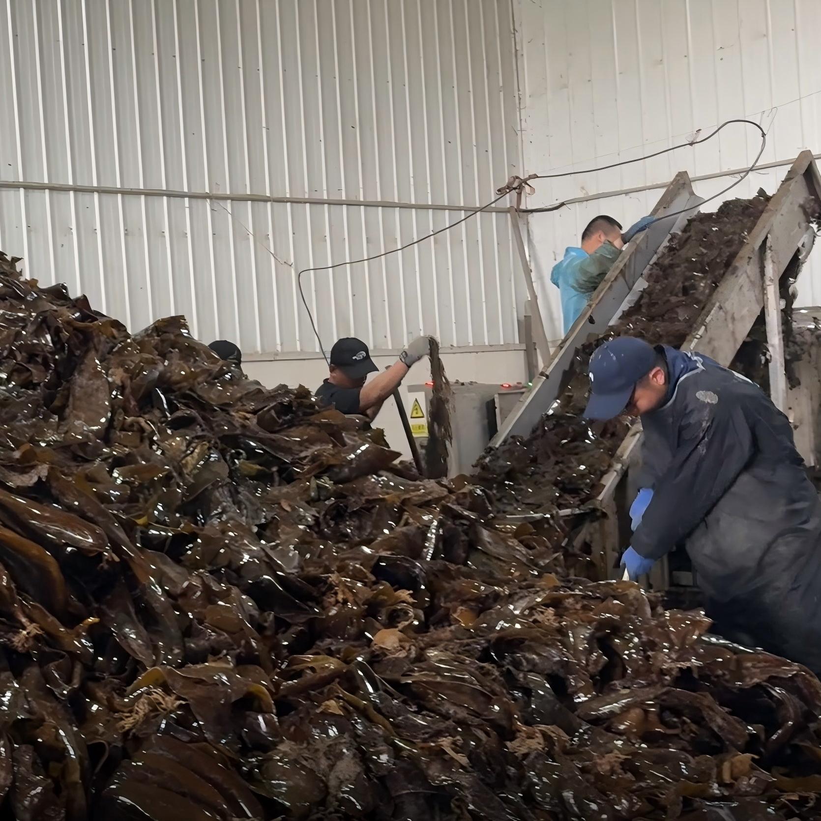 Fresh seaweed mechanically crushed to increase surface area for extraction