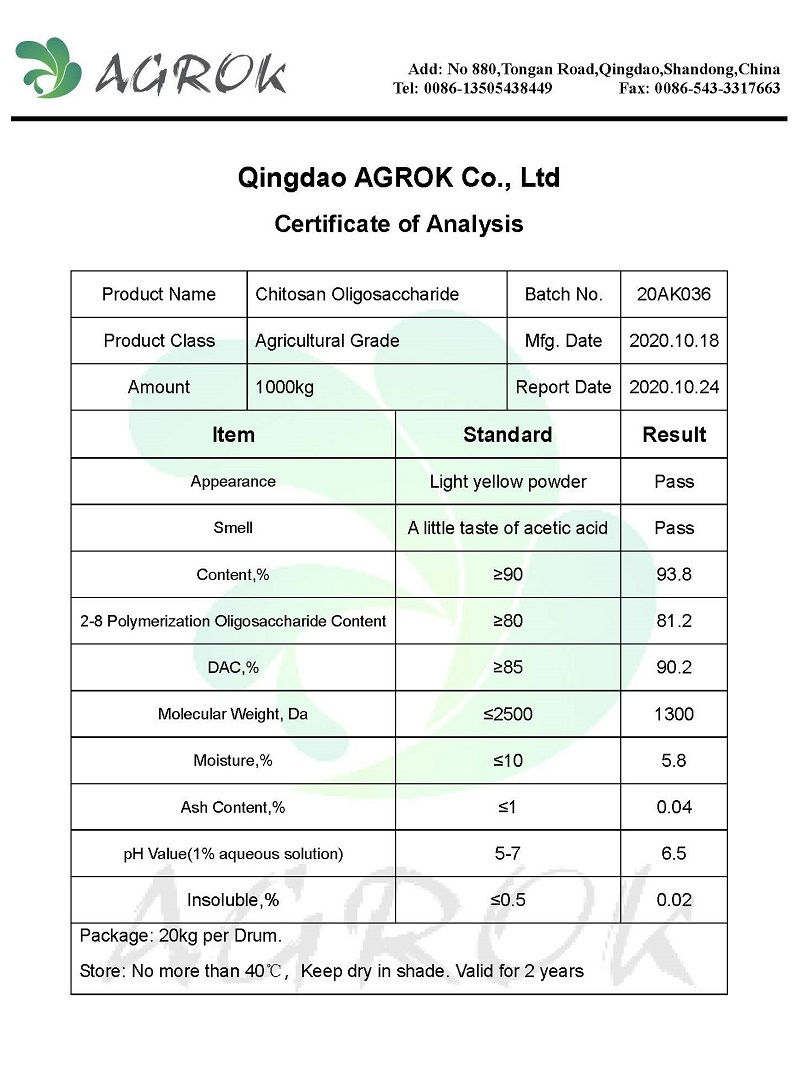 This is a kind of marine oligosaccharide refined by modern enzyme engineering technology. It is a kind of biological immune inducer. It can activate the immune and growth system reaction of plants, stimulate the genes in plants, produce chitinase, glucanase, protegerin and PR protein with disease resistance, and has cell activation effect, which is helpful to the recovery of damaged plants, promote the root and seedling growth and enhance the growth It can promote the growth and development of plants.